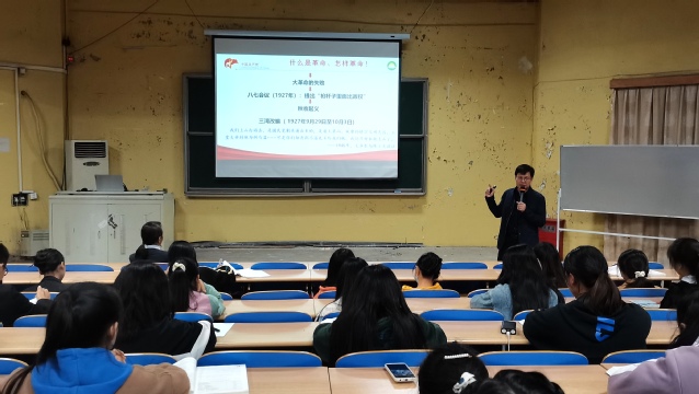 首先,华启和通过提问并对比1901和2021两个辛丑年的照片来展现如今中国的强大,由此引出马克思主义中国化伟大进程的重大现实意义,之后依次从毛泽东思想、邓小平理论、“三个代表”重要思想、科学发展观和习近平新时代中国特色社会主义思想,结合红色故事详细讲解了马克思主义中国化的理论,不断回答了“什么是革命、怎样革命”、 “建设什么样的社会主义、怎样建设社会主义”、“建设什么样的党,怎样建设党”、“实现什么样的发展,怎么发展”、“新时代坚持和发展什么样的中国特色社会主义,怎样坚持和发展中国特色社会主义”的时代课题,并在这个过程中体现出中国共产党的伟大和对信仰的坚守。最后,华启和对同学们提出了三点要求,一是要树立远大理想,志存高远,增强志气;二是要敢闯敢试,力争上游,增强骨气;三是练就过硬本领,砥砺前行,增强底气。同时希望同学们能脚踏实地,刻苦学习,磨练意志,成就自我。