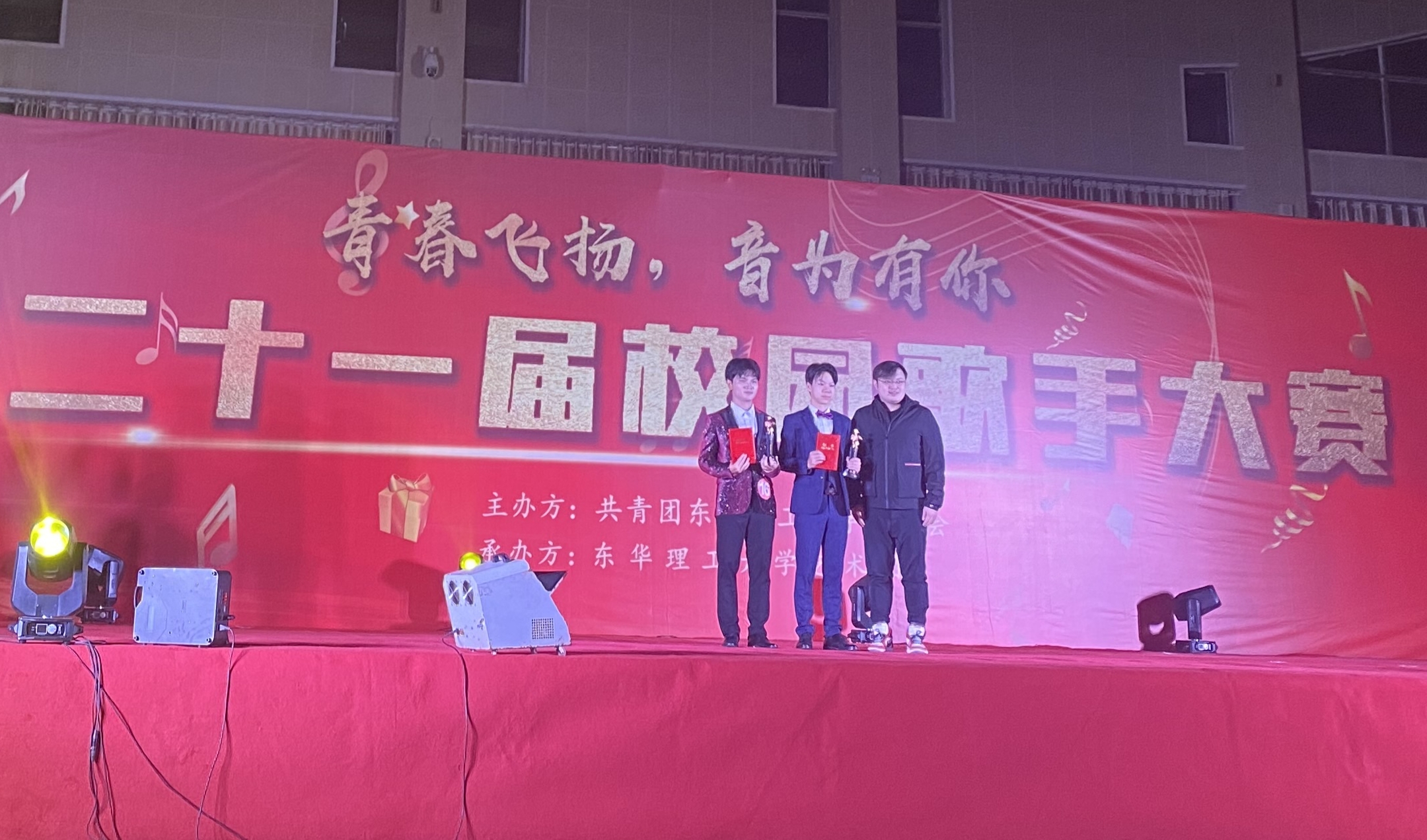 歌声嘹亮,音符飘扬,青春激荡,梦想起航。为推动校园文化发展,丰富学生课余生活,陶冶学生音乐情操,10月26日晚,由共青团东华理工大学委员会主办的第二十一届校园歌手大赛在体育馆隆重开唱。我院2020级网络空间安全专业的李夏宁同学与2021级数据科学与大数据技术专业的吴学斌同学经过层层选拔,两人均获得“校园十佳歌手”的称号,其中,吴学斌同学获得本届歌手大赛的季军。
