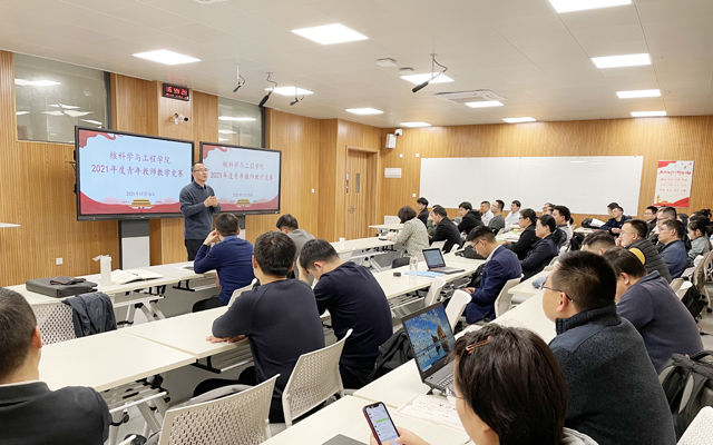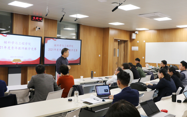为进一步落实立德树人根本任务,充分发挥课堂育人功能,加强青年教师教学能力培养,不断提升青年教师的教学基本功和教学水平,11月16日,核科学与工程学院在四教502教室组织举行了青年教师教学竞赛活动。校内专家罗明标、李寻、李农勤,院内专家刘玉娟、李传斌、吴和喜、魏强林担任比赛评委。院领导余斌、刘义保、刘顺祥、张怀强,全院教职工、部分本科生到现场观摩。竞赛由副院长张怀强主持。