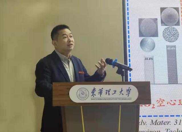 接着,刘云海、潘家永等11位校内教师先后围绕光催化海水提铀、铀成矿对海水提铀的启示、铀“稳定”同位素分析方法、地浸采铀相关技术等研究工作与参会师生进行了报告交流。此外,会议还邀请了中国科学院,中国科学院固体物理研究所周宏建副研究员作了关于电容去离子技术用于放射性核素的选择性吸附及富集浓缩的专题报告。在长达4小时的交流会上,参会师生就一些报告内容进行了热烈地讨论,学术氛围浓厚。