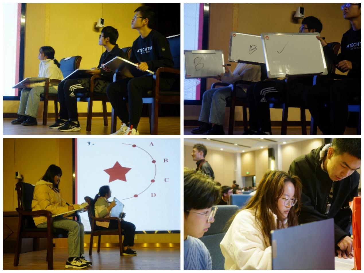 第一轮进行的是团队赛,25名参赛选手分成5个小组,经过激烈角逐,遴选出了15名佼佼者进入第二轮比赛。中场休息期间,主持人对场下观众发起有奖竞猜,现场气氛更加火热。