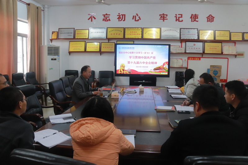 11月23日下午,创新创业教育学院在双创楼308会议室召开党总支中心组第十次(扩大)学习会,专题学习党的十九届六中全会精神,学院党总支理论学习中心组成员、学院全体党员参加会议,会议由学院党总支书记王合义主持。