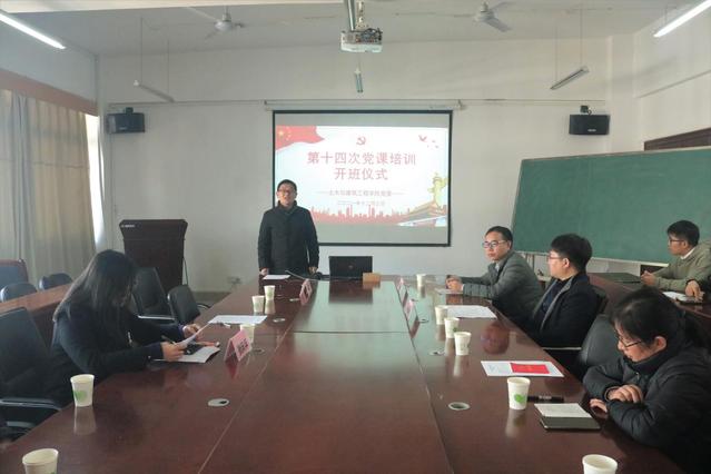 为进一步规范入党教育工作,提高入党积极分子的政治觉悟和理论知识,坚定共产主义理想信念,土木与建筑工程学院于2021年12月3日下午14:30在地学楼A609开展第十四期党课培训开班典礼。土木与建筑工程学院党委领导、教师代表、入党积极分子以及发展对象参与此培训活动。