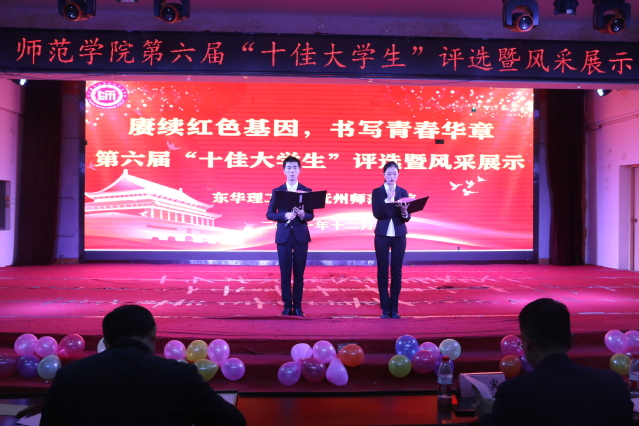 12月5日晚,师范学院第六届“十佳大学生”评选暨风采展示活动在学府校区玉茗剧院拉开帷幕。出席本次活动的有师范学院党政领导、各系部主任、学院相关老师及各班级学生代表。