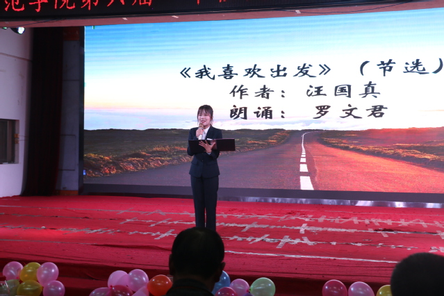 活动首先以学院制作的视频《奋斗青春心向党 礼赞百年庆华诞》和《缅怀革命先烈 青春告白祖国》开场,学院合唱队倾情演唱《我们都是追梦人》,充分展示了师范学子们红心向党、逐梦前行的坚定信念。之后主持人介绍了参与评选的十五位候选人以及现场投票规则,同时现场工作人员向观众发放投票卡。