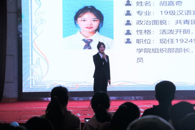十五名候选人依次上场,她们分别从个人介绍、思想情况、学业成绩、工作经验、未来展望等方面进行汇报展示。在她们中间,有潜心研究课题,参加各类国家级、省级竞赛的“科创达人”;有热心公益,积极参加公益活动的“服务先锋”;还有兼顾学习与工作,并能在闲暇时间发展兴趣爱好的“时间管理者”,她们用自己的经历为同学们树立了良好的榜样。候选人们还进行了舞蹈、吟诵等才艺表演。候选人们的勤学善学、乐观自信、积极向上博得了台下的阵阵掌声和欢呼声。