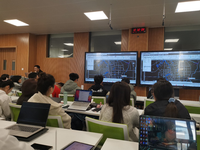 校外指导老师周斌结合给水排水管网设计实际工程案例,重点介绍了管网系统工程规划、工程设计原理及如何熟练运用鸿业市政管线软件进行给排水管道工程方案设计等。在指导交流过程中,通过工程案例讲解,让学生了解管网设计计算过程的复杂程度、管段设计流量获得的不易,培养学生不畏困难、敢于担当的精神和科学严谨、求真务实的态度,引导学生树立良好的“职业道德”素养。