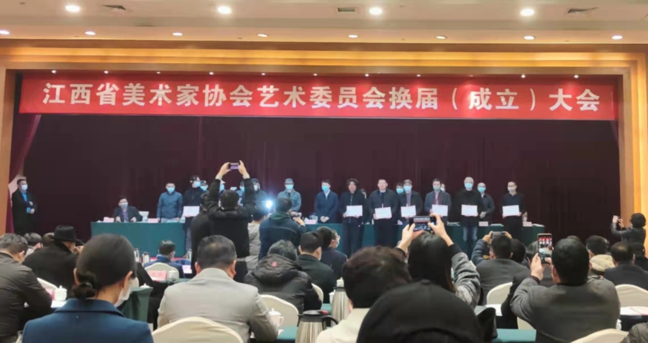 2021年11月25日,江西省美术家协会艺术委员会换届(成立)大会在南昌江西宾馆召开,此次会议是省美协根据《中国美术家协会艺术委员会工作条例》和《中共江西省文联党组织关于省级文艺家协会艺术(工作)委员会工作规则》规定,进行换届。会上,各代表委员共同审议了《江西省美协艺术委员会章程(草案)》及省美协艺委会主任、副主任、秘书长、副秘书长、委员人选名单的聘任决定。