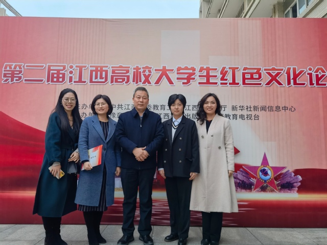 12月20日,全省高校第二届江西高校大学生红色文化论坛暨“红色走读”优秀作品展在豫章师范学院举行。校党委副书记刘紫春带队参加活动,党委宣传部、学工部(处)、校团委等相关部门负责人陪同。