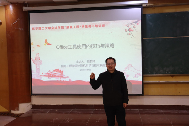 11月25日晚七点,由信息工程学院计算机科学与技术系副主任蔡友林主讲的“office工具使用的技巧与策略”知识讲座在图书馆阶二教室举办,多层次、多角度地开展文法学院“展翼工程”学生骨干培训工作。本次会议由文法学院党委副书记黄来明、院团委老师李磊主持,全院学生骨干共计100余人参与讨论学习。
