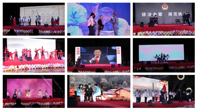 情景剧《网络安全时代》,小品《骗中骗》、《遵命 尊命》紧贴校园生活,用轻松愉快的情景演绎,再现了当代电信诈骗和校园防疫故事;舞蹈《画卷》、《我怎么这么好看》、《爱的华尔兹》惊艳全场,同学们跳出了青春的步伐,舞出了生命的色彩;红色故事《觉醒年代》、《追忆》为大家带来了一堂别开生面的党史教育课;由两院师生共同演出的情景剧《八子参军》,再现了当年苏区人民支援革命的英雄壮举,在场师生被表演的情节深深打动和感染落泪,让我们更加珍惜无数革命先烈的牺牲换来的和平盛世和幸福。许亚男老师的“脱口秀”演出,把易中天、小沈阳、刘能等艺人“请上台”,模仿他们的声音,在和谐幽默的情景中为师生们讲述了东华理工大学的校史,并献上歌曲《我的中国心》,一个个高能瞬间,赢得了全场的阵阵掌声与欢呼,一瞬间,体育馆内掌声雷动、热火朝天。更有各类别出心裁的舞蹈与独具匠心的乐器合奏演出,引得台下观众翘首观看、拍案叫绝。最后,元旦晚会在歌曲串烧《我爱你中国+红旗飘飘》中圆满落下帷幕。