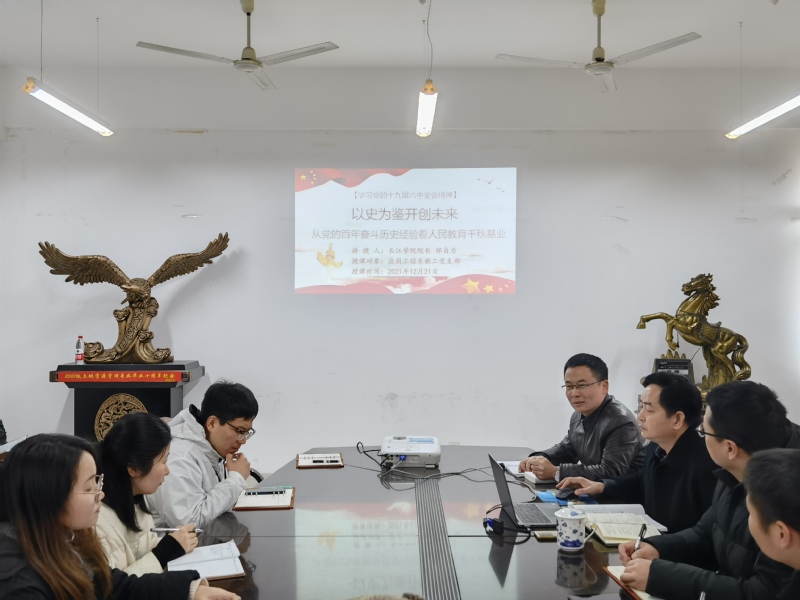 近日,应用工程系教工党支部在科技楼615举办深入学习贯彻党的十九届六中全会精神宣讲报告会,长江学院院长邹自力应邀作了题为《从党的百年奋斗历史看人民教育千秋基业》的专题宣讲。教工党支部全体党员参加了此次宣讲会。