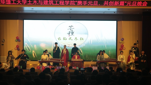 晚会在中华传统文化《舞狮》中拉开帷幕,精彩纷呈的表演使现场的气氛活跃了起来。接下来的集体朗诵《强国有我,请党放心》肯定了我党在强国之路上达到的成就,也表明了在社会主义建设道路上我们广大青年的决心与意志。吉他弹唱《new boy》用欢快的音符,动人的歌声带动着观众们的情绪,使观众们也不由自主地跟着唱了起来。随后的乐队表演的《山海》以激昂的鼓声和炸裂电吉他更是将整个晚会的气氛推上了高潮!小品《神探》以诙谐幽默的叙事方式讲述了两位“神探”破案的故事。随后我院学生会文艺部全体成员给大家带来了光影剧《无名》,他们用简单的光与影描绘了生活中那些点点滴滴的感人故事,白幕落下后,赢得观众们的阵阵掌声。来自经管学院的几位同学为我们带来了《舞蹈串烧》,现代舞与传统民族舞的完美融合,成为了晚会上一道靓丽风景。身着传统汉服的民乐社的同学们给我们的带来了民乐合奏《芒种+穿越时空的思念》,将现代流行歌曲与古筝相结合,可谓是创意十足。而后各班班长带来的小品《表演》,更是用富有幽默感的表演,给观众们带来了阵阵欢笑。最后,本届元旦晚会在全体参演人员集体演唱《明天会更好》中落下了帷幕,展现广大土建学子对美好未来的无限期望和乐观向上的人生态度。