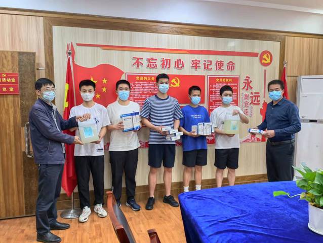 3月16日,学院购置了防护物资口罩消毒液等,学院党委书记李儒俊、院长赵克锋及时将抗疫物资分发到各中队。