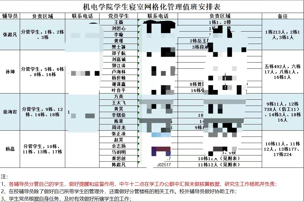 在疫情突袭的高压下,学院党委对疫情防控做出紧急部署,基层党支部书记扛起责任、主动担当、彰显作为,及时吹响抗“疫”集结号,强化党员信息上报、走访排查、防治宣传、帮扶关爱等工作责任,制定师生宿舍网格化管理值班安排表。