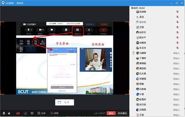 刘娜娜老师从操作、直播课功能、课堂反馈以及督导听课四个方面讲述了雨课堂在线上教学中的优势。之后,更是通过屏幕分享的方式带大家进入“互动直播课”,现场感受雨课堂的直播氛围。