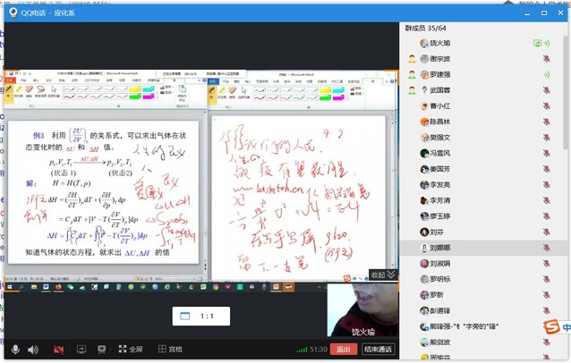 本次线上会议由罗建强主任主持召开,应用化学系饶火瑜、刘娜娜两名教师分享了他们的网课经验。饶火瑜老师向大家展示了如何在线上教学中实现手写板的操作,方便大家网课写板书以及在幻灯片中做标记,与学生互动交流。
