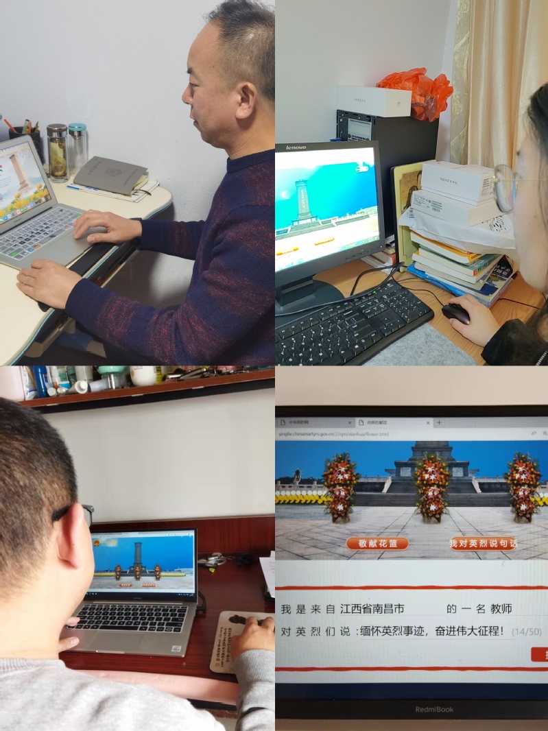活动中,支部党员教师纷纷通过访问中华英烈网浏览英烈的英雄事迹,向英烈们敬献花篮,留言祭拜,表达对革命先烈和英雄模范的崇敬和追思。