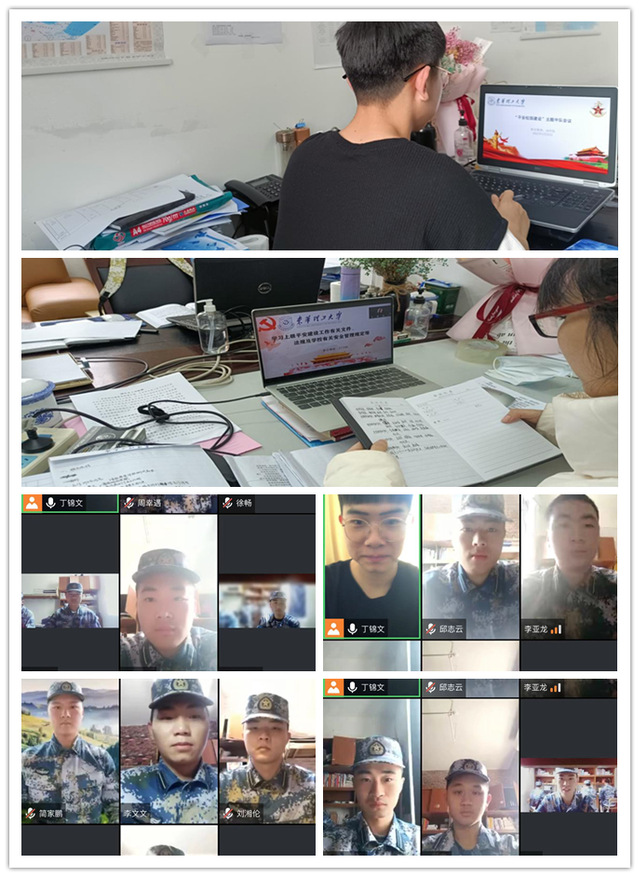 3月20日,研究生辅导员丁锦文、黄文琪通过线上班会组织全体海军定向培养士官学习宣传平安建设的一系列重要决策部署;学习上级平安建设工作有关文件、法规及学校有关安全管理规定。