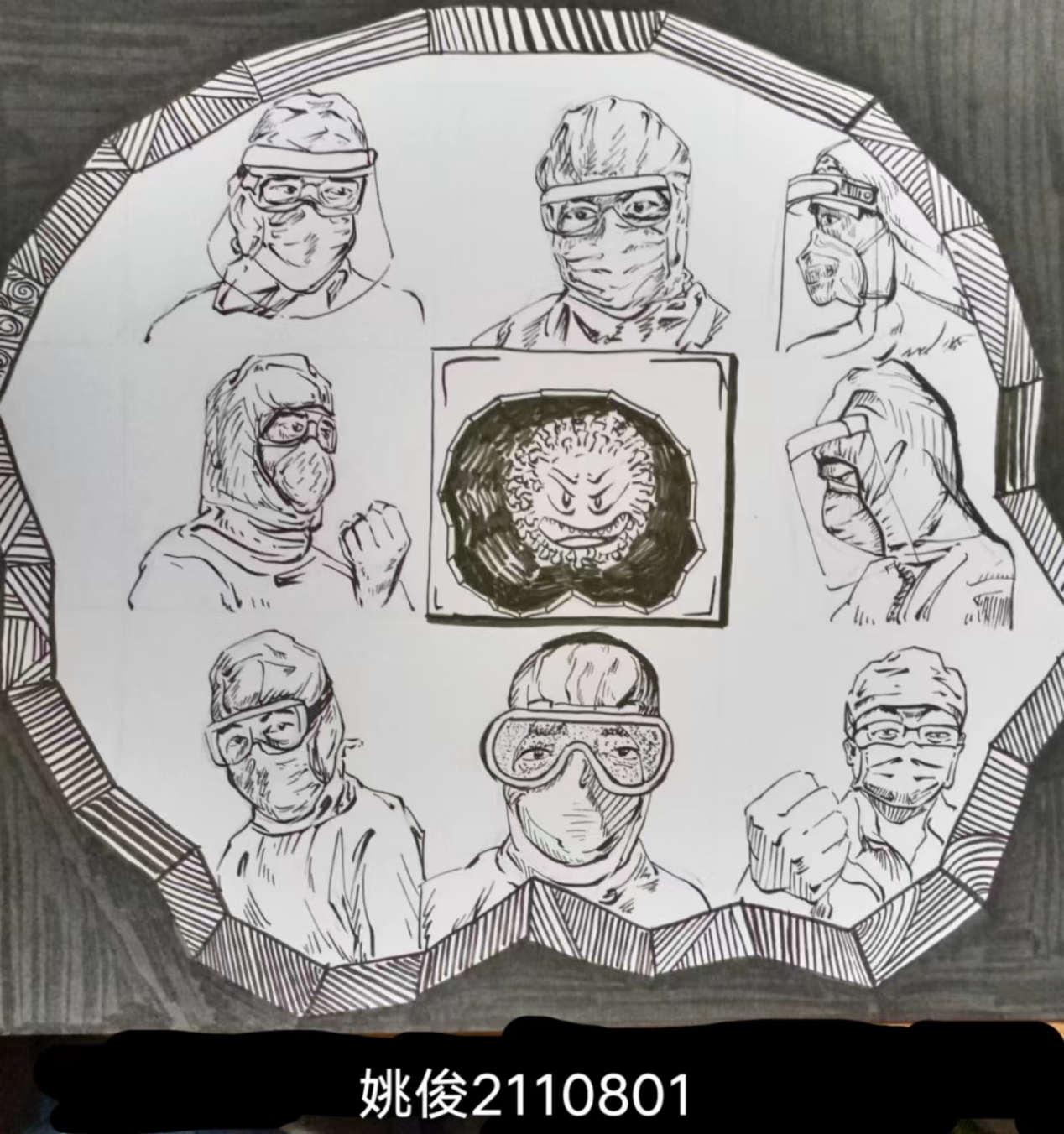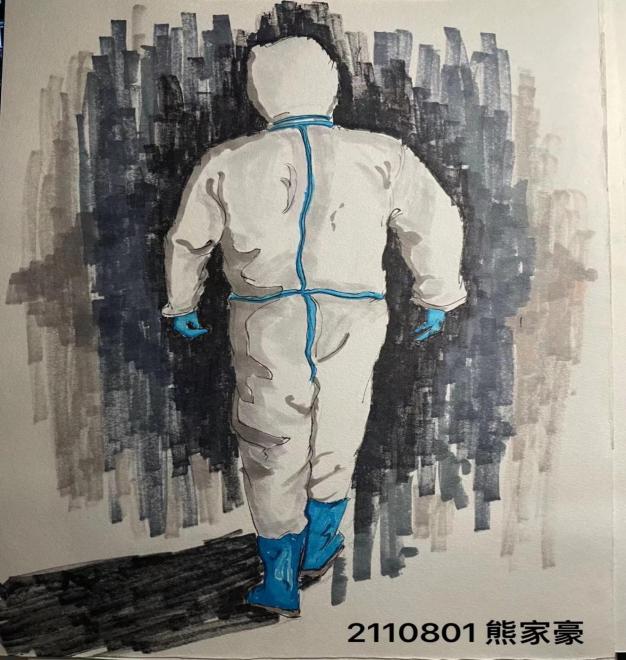 学生们通过线上防疫主题美术作品创作,传播了正能量,构筑了守望相助的防护网。(图/文 艺术学院 汤紫欣)
