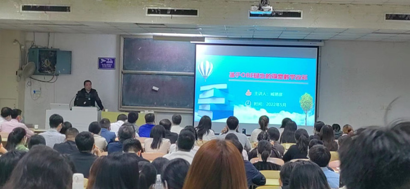 讲座过程中,臧教授为大家详细解读了OBE教育理念的内涵,并从成果导向教育理念出发,结合“反向设计、学生中心、持续改进”三个教学关键,围绕课程体系改革、课堂教学改革与教学评价改革,深入浅出地阐述了“如何把握应用OBE理念”这一问题。在谈到进行课堂教学改革的重要性,臧教授指出课堂教学应当从目标、需求、过程、评价、改进等五个方面进行课程设计,重构培养方案,形成新的课程体系。同时,强调教师教学要遵循“四个回归”要求,深刻理解学生中心理念,解放课堂,打破课堂教学改革壁垒。