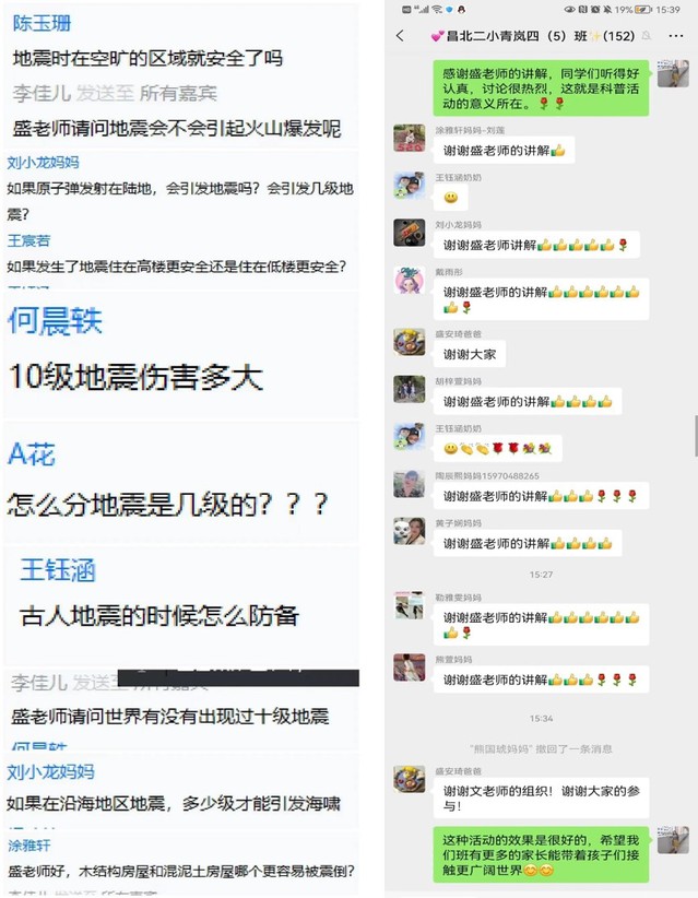 讲座过程中,两位老师还结合疫情期间如何做好个人防护以及国家和政府始终将人民的生命安全放在第一位所采取的相关防疫政策为例进行了一次微党课,引导大家自觉遵守防疫各项规定,牢固树立灾害风险防范意识,切实提高防灾救灾能力,共同守护美好家园。师生和家长们听的聚精会神,积极互动,整个讲座过程气氛轻松活跃,同学和家长们对防灾减灾的认识更加深刻了,大家纷纷表示老师的讲解通俗易懂,收获颇丰。