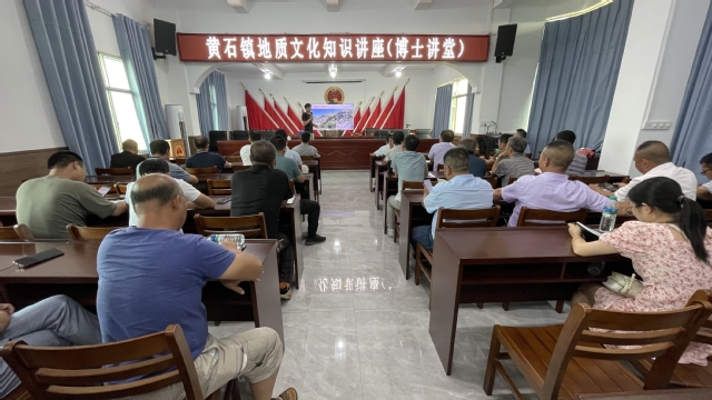 活动期间,黄石镇党委书记钟庆卫与普通地质教研组党支部书记杨庆坤共同参加了全国首批地质文化村——大洲塘村的挂牌仪式。杨庆坤为黄石镇机关干部、村党支部书记(村长)、新时代文明实践员等作了“身边的地质现象”地学科普讲座。双方就大洲塘地质文化村后期规划和建设做了深入交流。