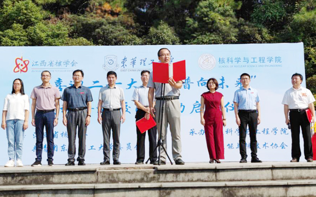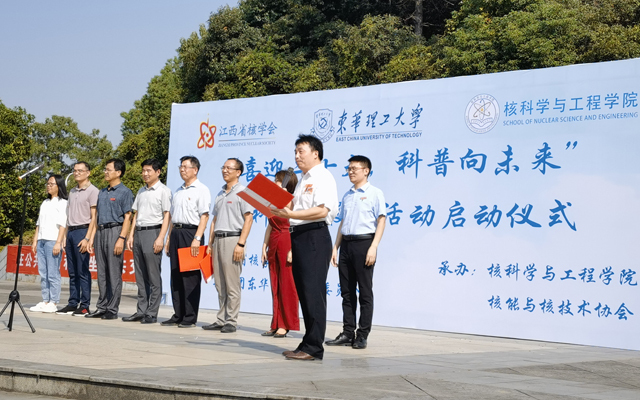 为了深入贯彻习近平总书记关于科技创新和科学普及的重要指示精神,积极响应中国科协全国科普日活动的号召,加强核科学知识的宣传普及,以实际行动迎接党的二十大胜利召开、祝福祖国73周年华诞,9月29日下午,由江西省核学会、共青团东华理工大学委员会主办,核科学与工程学院、核能与核技术协会承办的2022年“喜迎二十大,科普向未来”核科普进校园系列活动在我校青春广场举行启动仪式。江西省核学会理事长张志和、秘书长汪洋,校团委书记曾华,核科学与工程学院党委书记余斌、院长刘义保、党委副书记刘顺祥、副院长张怀强出席仪式。学校师生代表、江西省核学会志愿者等一百余人参加仪式。仪式由余斌主持。