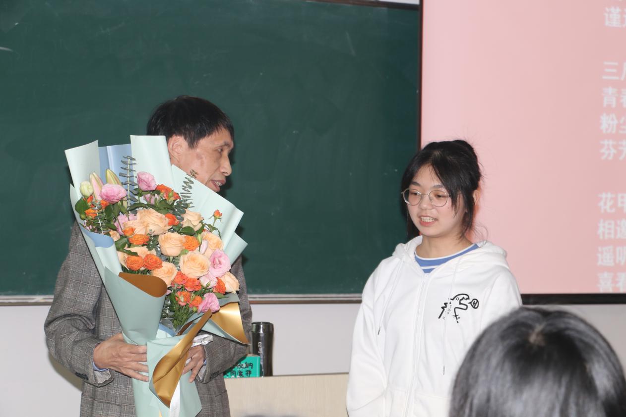 这是李老师从教生涯的最后一课,授课内容翔实,节奏感强,学生互动多。李老师善于将知识性和趣味性结合,充分调动学生学习的主动性,提高学习效率,白驹过隙,一节课很快就结束了。现场观摩的师生们如沐春风,受益颇多。课毕,詹思怡同学作为学生代表,对李老师表达了感谢。财务管理系负责人深情回顾了李兴平老师从教40年,坚持立德树人初心、辛勤耕耘,为学院建设与发展做出的贡献。