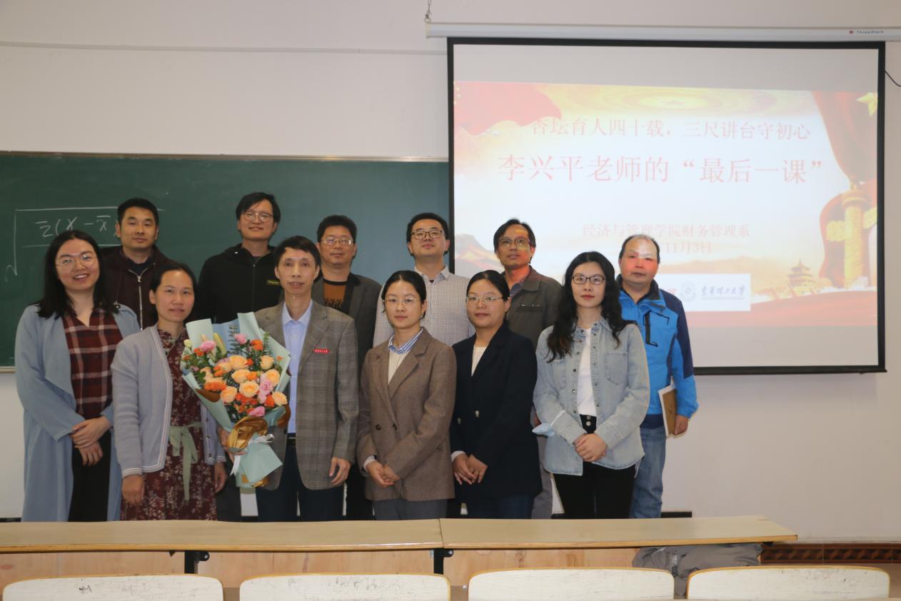 2022年11月3日下午,财务管理系在枫林校区图书馆406教室为李兴平老师举行了简朴而又温馨的“最后一课”荣休仪式。财务管理系全体青年教师和2021级广告学专业同学共同见证了这个具有特殊意义的时刻。
