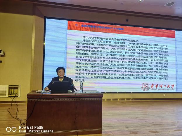 “开学第一课”分为两部分:第一部分为党的二十大精神宣讲。吕开云详细解读了习近平总书记在中国共产党第二十次全国代表大会上所作的报告,希望同学们能够认真学习宣传党的二十大精神,坚定理想信念,努力学习,艰苦奋斗,让青春在全面建设社会主义现代化国家的火热实践中绽放绚丽之花。第二部分为校史院情介绍。吕开云从学校历史沿革讲到如今学院的发展,取得的丰硕成绩凝聚了一代又一代东华理工人的汗水。希望同学们能够以众多优秀校友为榜样,敦本务实,崇义奉公,明德厚学,爱国荣校,为学校实现“行业领先、国内一流、国际知名”特色高水平大学的宏伟目标作出最大贡献!