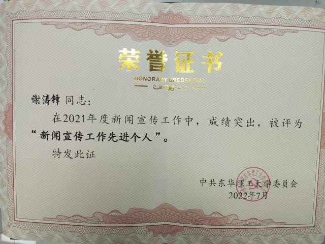 经学校思想政治教育工作领导小组成员单位评审,校党委常委会研究,授予地球科学学院“2021年新闻宣传工作先进单位”,授予谢涛锋同志“2021年新闻宣传工作先进个人”,并予表彰。