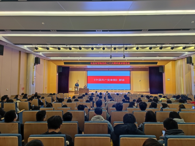 12月6日下午,为了深入学习和贯彻落实党的二十大精神,学校宣讲团成员、马克思主义学院院长汪晓莺教授来化学生物与材料科学学院作党的二十大精神宣讲报告。学院党委书记吴小龙主持会议,在家学院党政领导班子成员、学院200余名师生代表参加宣讲报告会。