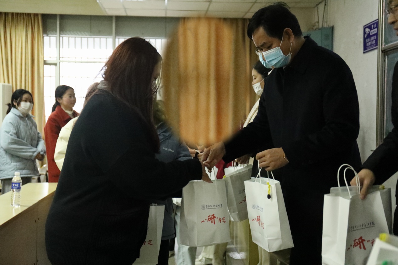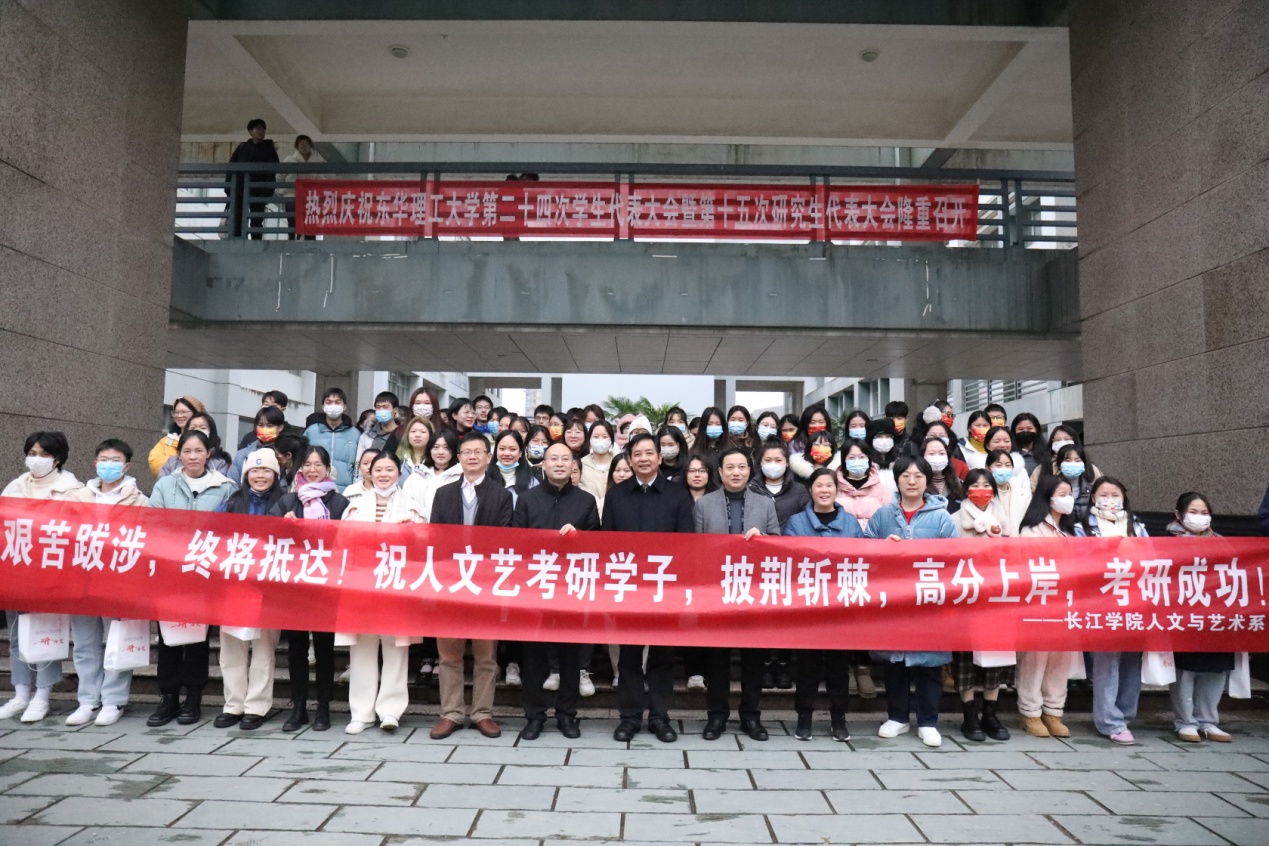 2023年全国研究生入学考试即将来临,为增强我院考研学子信心,缓解备考压力,院人文与艺术系于2022年12月7日下午在阶十组织开展了“考研送温暖”活动。院党委书记江雁飞、院长邹自力、院党委副书记陈凌、副院长陈坚出席活动,全体领导班子成员到现场为学子们加油打气,为考研学子送上最真挚的祝福。