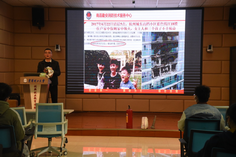 为进一步普及消防安全知识,提高师生消防安全意识,12月9日下午,创新创业教育学院组织学院教职工及大学生孵化基地师生在学院楼106开展消防安全专题培训,活动邀请南昌勤安消防技术服务中心副主任胡帆现场授课并进行消防器材实操演练。