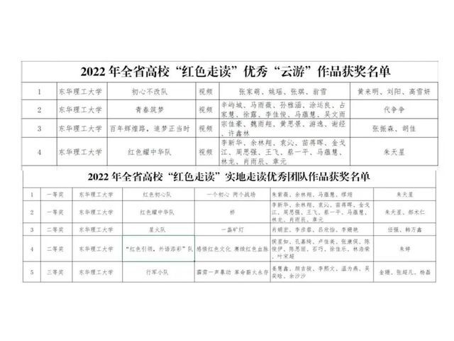 近日,江西省委教育工委、省教育厅公布了2022年全省高校“红色走读”活动评选结果。学院两支团队脱颖而出,《桥》和《一颗初心 两个战场》分别获评全省一等奖2项,《“桥”见初心》获评优秀“云游”作品1项,取得了历史最佳成绩。