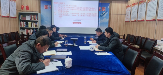 会上,李儒俊主持学习了《张福庆、孙占学在“全面贯彻党的二十大精神 奋力推进‘双一流’建设”专题研讨会上讲话》、习近平总书记在二十届中央纪委二次全会上重要讲话精神、习近平总书记在二十届中共中央政治局第二次集体学习会上的重要讲话精神、《习近平强军思想学习问答》及习近平总书记《论坚持全面依法治国》。