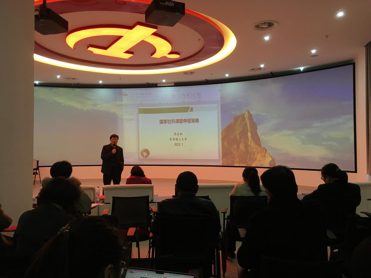 华启和教授围绕国家社科课题申报策略,从精心选题、潜心梳理、尽心论证、申报体会等方面进行了有针对性的阐释,鼓励教师认真准备,积极申报,认真撰写申报材料,提高课题命中率。此次交流会,参会教师表示受益匪浅,拓宽了思路,纷纷表示要努力做好2023年国家社科基金项目的申报工作。(文/图 段艳丰)