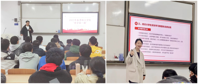 为深入学习贯彻落实习近平总书记关于教育的重要论述和党的二十大精神,切实加强大学生思想政治教育、安全教育和心理健康教育,统筹推进科学防疫和学生教育管理,引导大学生以良好的精神面貌投入新学期学习生活,根据学校的工作部署,2月27-28日,核科学与工程学院组织开展了“开学第一课”系列活动。学院党委书记余斌、副书记刘顺祥、全体辅导员及本科生、研究生参加了此次活动。