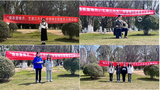 最后,支部党员依托专业特色,在名人雕塑园广场开展了一场别开生面的公益性演出。舞蹈、朗诵、合唱、二胡独奏等轮番上阵,大家用极富感染力的艺术语言,演绎了《雷锋颂》、《怀念雷锋》、《学习雷锋好榜样》、《学习雷锋在路上》等节目来表达对雷锋的敬意。