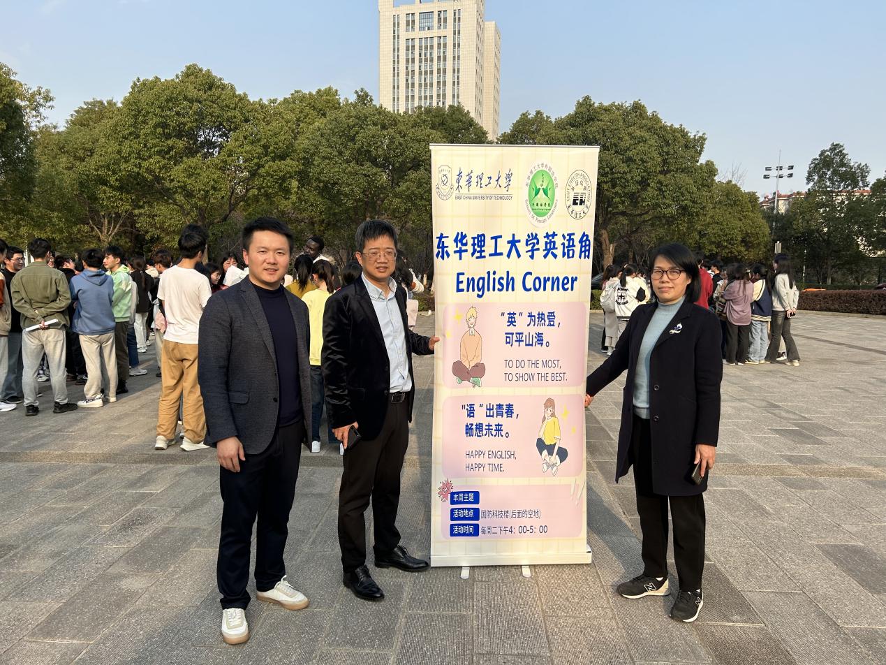 3月7日下午,由外国语学院英语协会主办的英语角活动在国防科技楼广场北侧举行,学院学生代表参加交流,徐鹏程与外国语学院党委副书记杨林出席本次活动。