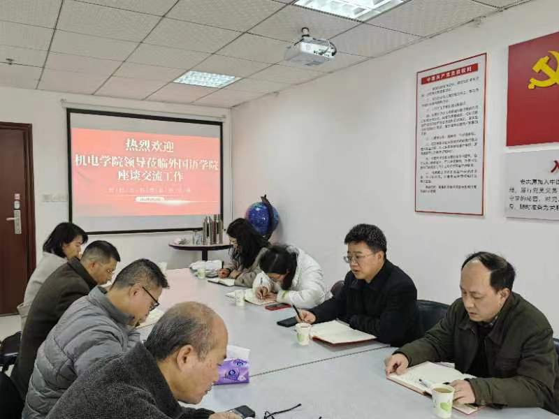 近日,机电学院党委书记徐鹏程、副院长陈志新、副书记邓文娟一行前往外国语学院开展学风建设调研,就“携手促学风 协作学英语”活动开展细节进行沟通与交流。