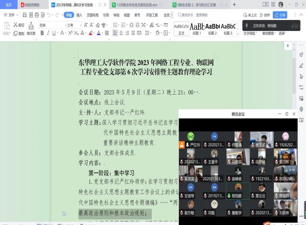 软件学院学团办公室党支部、网络工程系与数字媒体系联合教工党支部,信息工程学院计算机科学与技术专业学生党支部对《习近平新时代中国特色社会主义思想专题摘编》、《习近平新时代中国特色社会主义思想学习纲要》等著作中的内容进行了集中学习,大家牢牢把握“学思想、强党性、重实践、建新功”的总要求,用习近平新时代中国特色社会主义思想提升政治素质,提高能力本领,锤炼工作作风,达到以学铸魂、以学增智、以学正风、以学促干的效果。