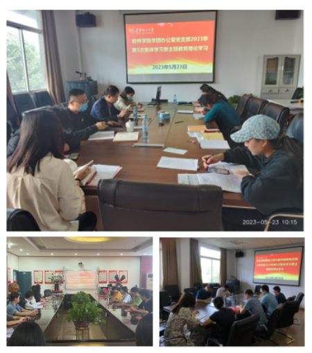 软件学院学团办公室党支部、网络工程系与数字媒体系联合教工党支部,信息工程学院计算机科学与技术专业学生党支部对《习近平新时代中国特色社会主义思想专题摘编》、《习近平新时代中国特色社会主义思想学习纲要》等著作中的内容进行了集中学习,大家牢牢把握“学思想、强党性、重实践、建新功”的总要求,用习近平新时代中国特色社会主义思想提升政治素质,提高能力本领,锤炼工作作风,达到以学铸魂、以学增智、以学正风、以学促干的效果。