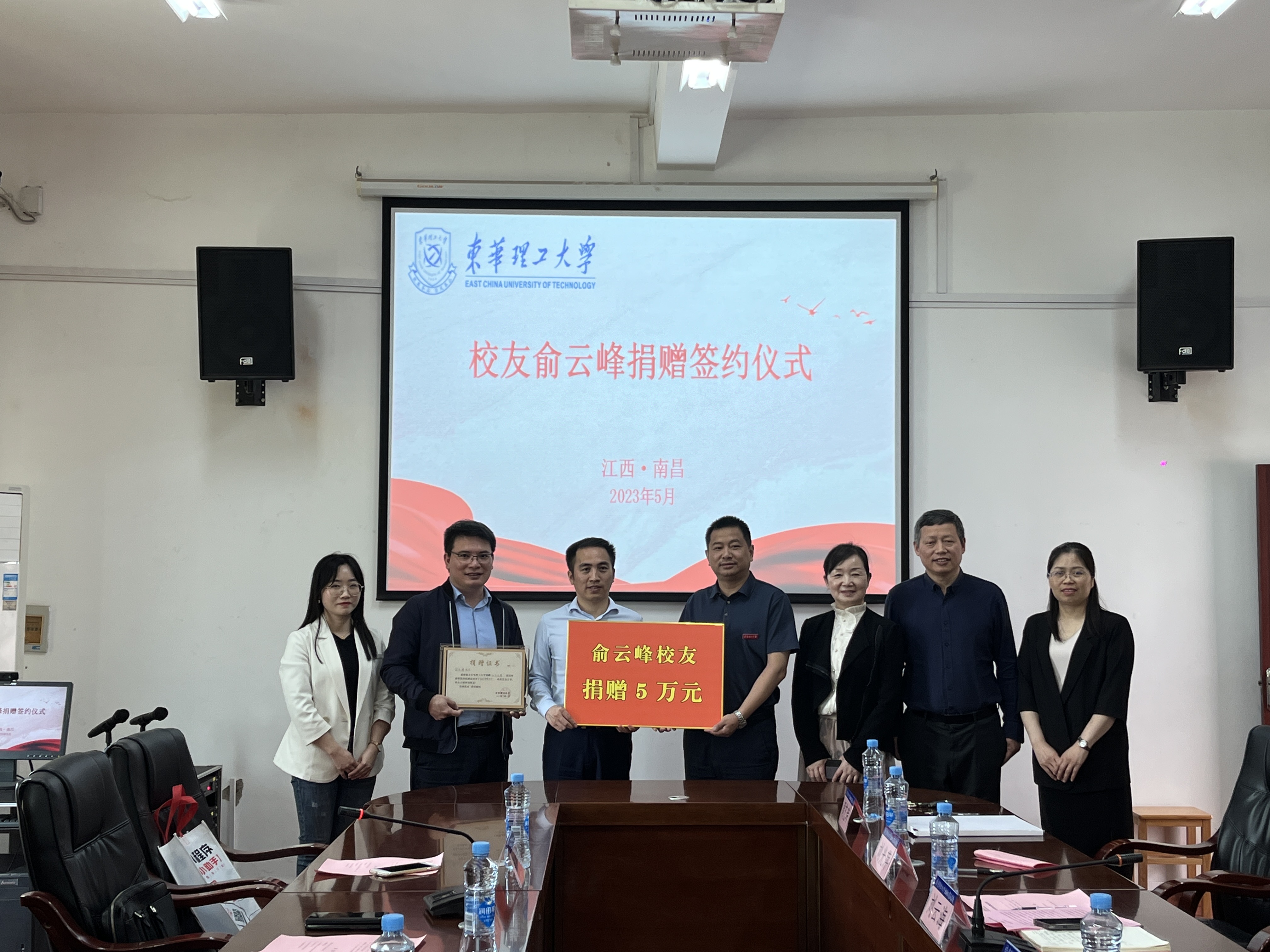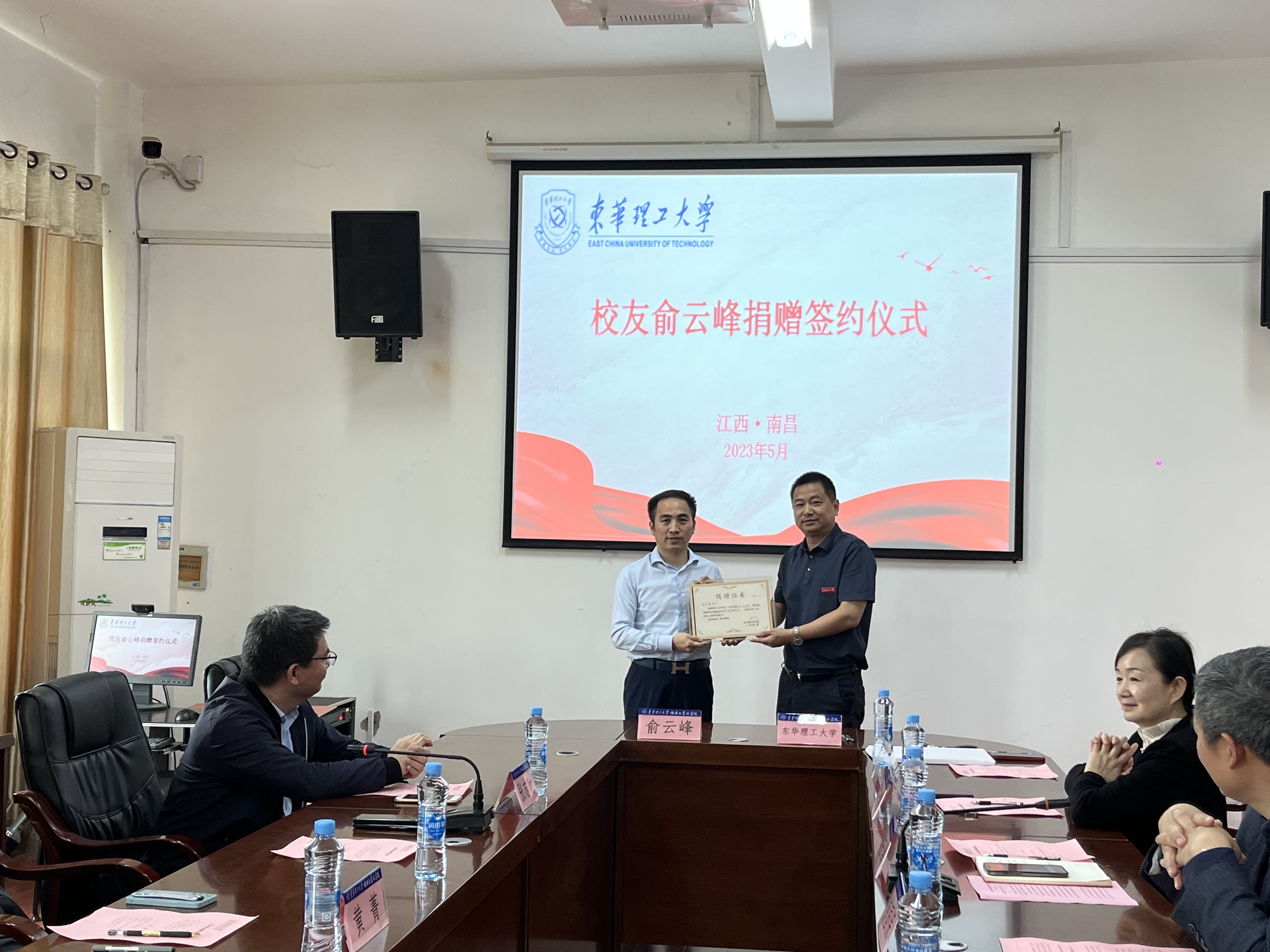 仪式上,刘云海向俞云峰颁发了捐赠证书,东华理工大学教育发展基金会负责人与俞云峰签署了捐赠协议。