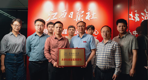 为深入开展学习贯彻习近平新时代中国特色社会主义思想主题教育,拓宽办学资源,促进学院、企业、校友多方联动,助推毕业生高质量就业,5月25日,理学院党委书记任强、党委副书记刘唐伟、部分教师、2023届毕业生代表一行,走进校友企业横有八荒传媒公司开展调研交流,南昌校友会常务副会长肖斌,秘书长王龙兴,副秘书长宋依凡等陪同调研。