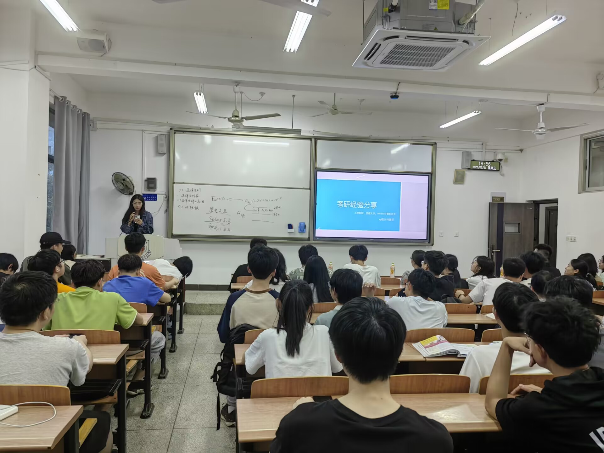 为深入开展学习贯彻习近平新时代中国特色社会主义思想主题教育,在以学铸魂、以学增智、以学正风、以学促干上下功夫见实效,树立以学生为中心的办学理念,加强学生对考研考公的正确认识,进一步明确考研规划,激发学习动力,保持学习热情。信息工程学院于5月31日在三教220开展了考研考公经验分享会。分享会邀请了王珺、马婧翌、曾菲、徐达共4位优秀毕业生作交流分享,部分辅导员及其他年级学生100余人参加此次了分享会。