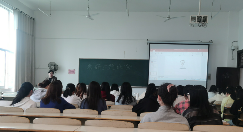 在分享会上,梁雨晨先分析了当前的考研形势,介绍了2019级各专业目前考研录取情况与往届学生在考研过程中取得的成绩,鼓励同学们坚定考研信心,保持良好心态,争取考研成功。