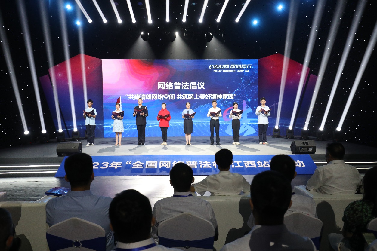 为深入学习贯彻习近平新时代中国特色社会主义思想,进一步落实网络普法,近期江西省开展了多项普法行动。6月13日上午,2023年“全国网络普法行·江西站”活动在江西省广播电视台启动。启动仪式上,信息工程学院2022级计算机科学与技术专业学生龚小霞和来自江西各地的普法志愿者共同宣读了以“共建清朗网络空间 共筑网上美好精神家园”为主题的网络普法倡议书,向社会各界发出共同倡议,争当倡导网络文明新风、净化网络环境、促进和谐稳定的“文明上网人”,奏响江西网络文明的时代强音。