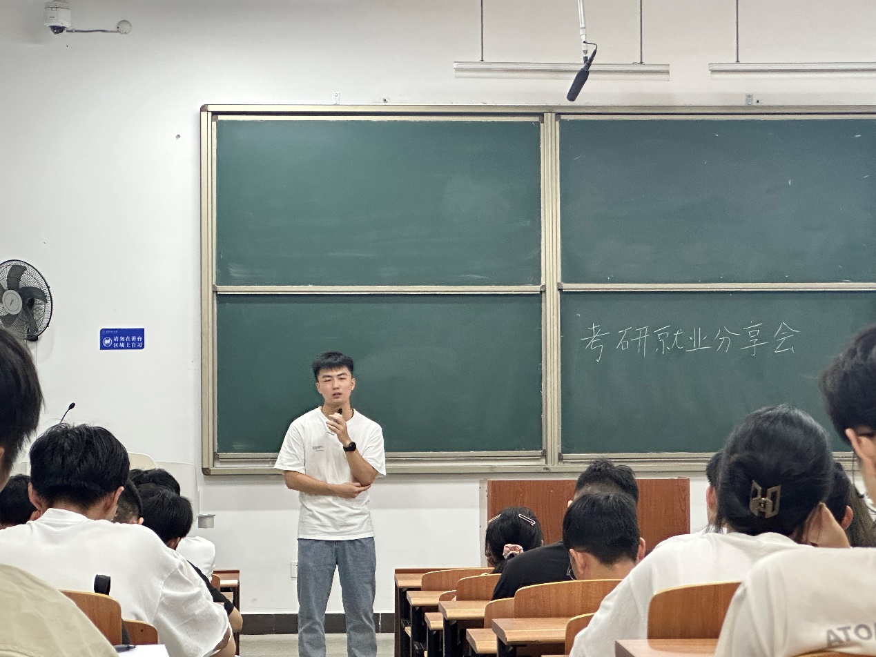 为早谋划、早部署、早推动2024届毕业生升学及就业工作,扎实推进考研就业工作,6月14日,学院在3教阶10、阶11教室举办了一场关于考研就业分享会。本次活动邀请了4位大四优秀毕业生与大三同学们见面交流,分享自己在考研以及求职过程中的心得体会和宝贵经验。